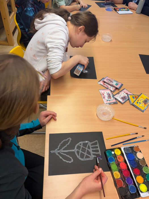 Wir waren heute kreativ und haben uns mit der Salzmalerei beschäftigt.